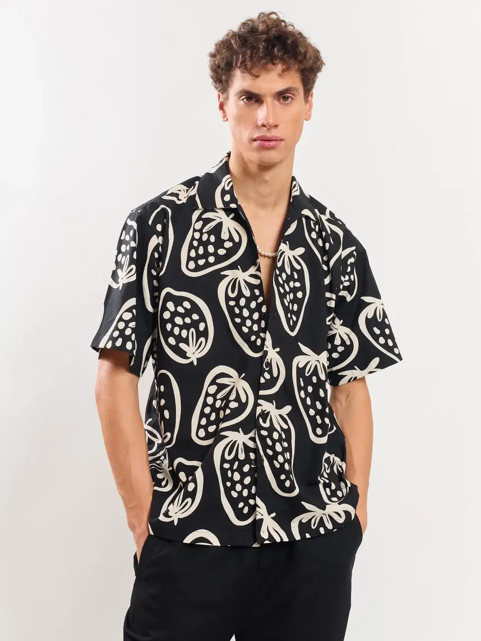 ndulge in the sweet charm of Berry Nice, a delightful addition to your wardrobe that makes every day feel like a summer picnic. Crafted from breathable cotton fabric, this Printed shirt offers a relaxed fit that promises comfort and style in equal measure. With its playful strawberry print, the shirt brings a touch of fruity fun to your outfit, making you crave a refreshing sip of cool berry crushers with every wear.