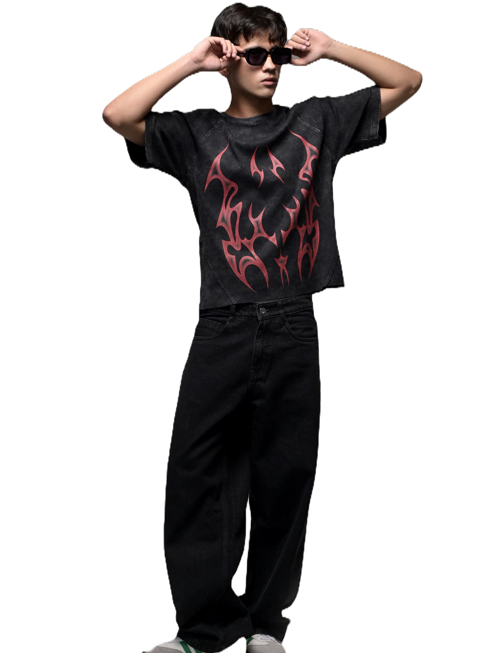 t's Ribbed 240gsm 98% Cotton Boxy/Oversized Fabric T-shirt Blend with 2% Polyester. It's the most reliable and comfortable fabric for summers. Including Ribbed Collar and Rough edges on(Sleeves/bottom Rib Area) to blend the T-Shirt into a perfect streetwear look.